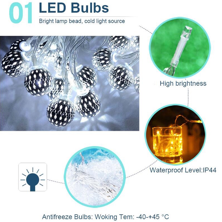 Ironwork Hollow Small Ball Outdoor LED Light String Garden Festival Decoration Light with Remote Control