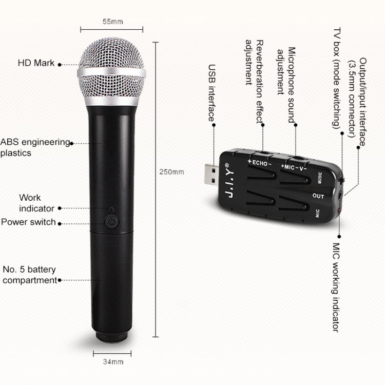 J.I.Y K Song Wireless Microphones for TV PC with Audio Card USB Receiver