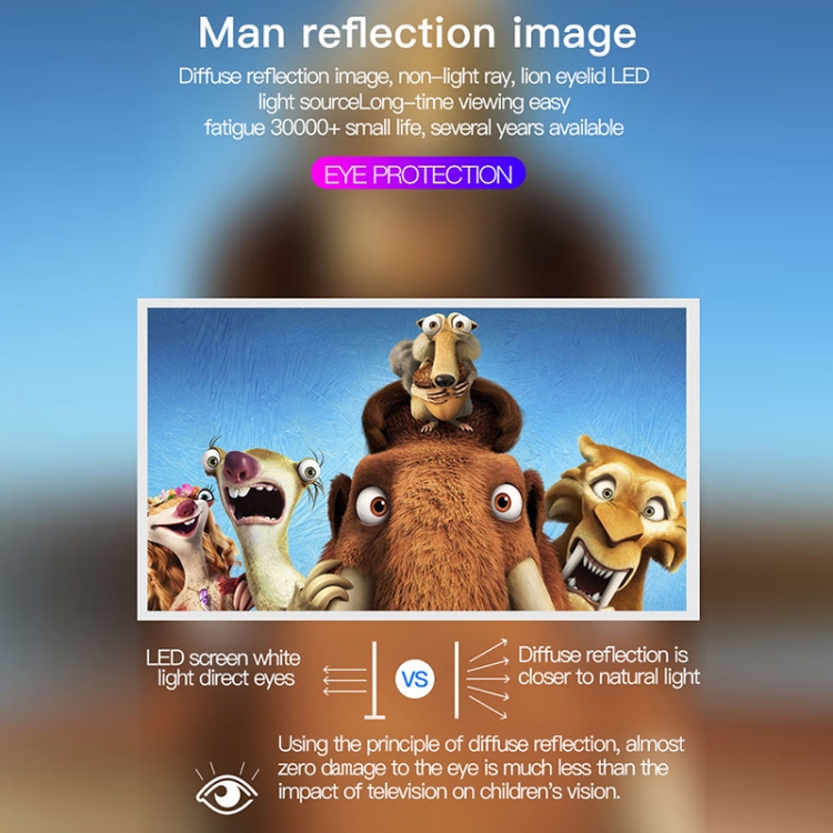 3. Diffuse reflection imaging, the light does not shine directly on the eyes, care for the eyes, long-term drama is not easy to get tired, 30,000+ hours of life, long use time.