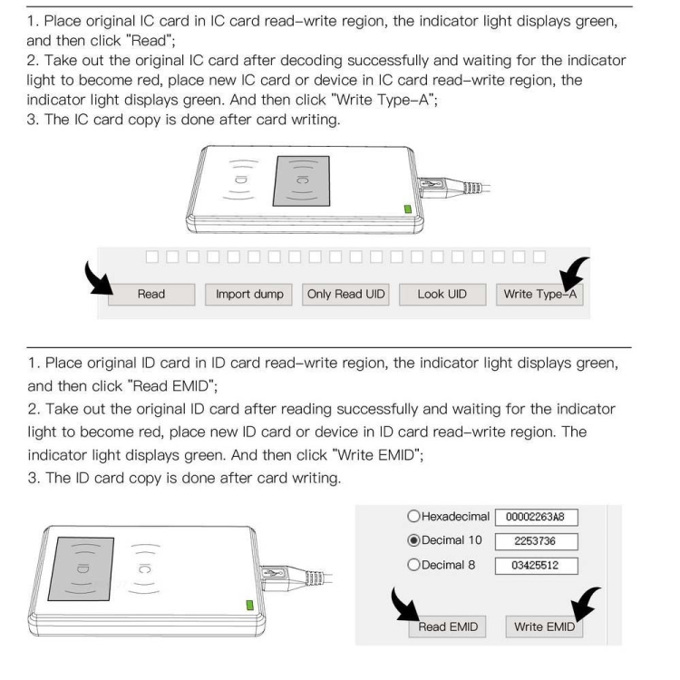 5. Function: It can copy and edit IC proximity card and ID proximity card, a comprehensive type proximity card reading and writing device