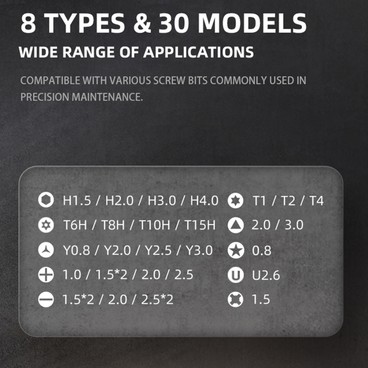 1. 8 type 30 pcs of H4 X 28mm precision repair CR-V screwdriver bits, wide range of applications. Detailed and comprehensive.