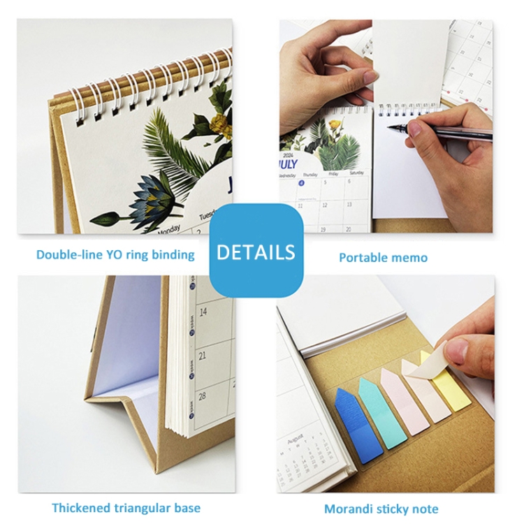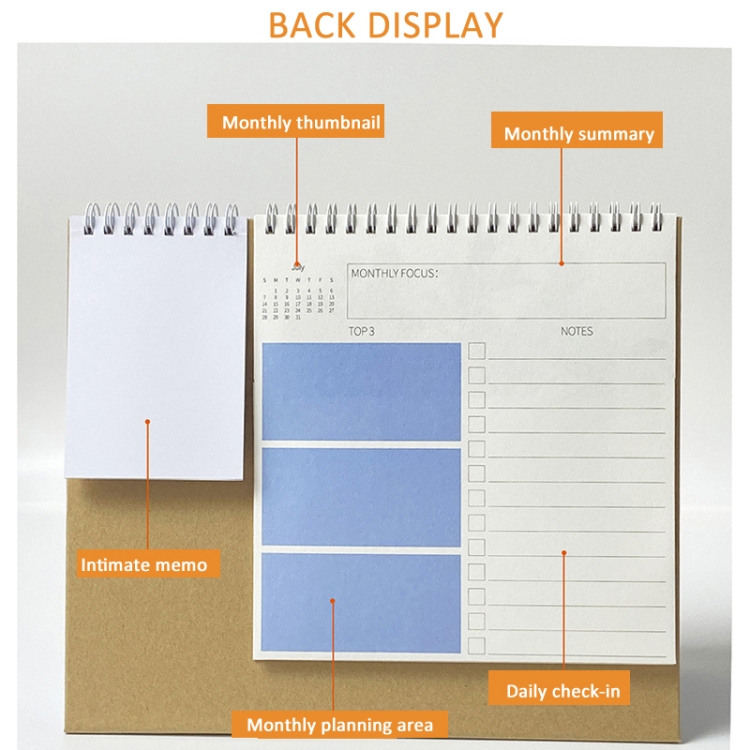 1. 2025 desktop calendar, with a calendar pocket on the front to store items, 5-color labels and portable memos for recording important matters; the back also has a monthly planning area/daily check-in area/monthly key area division to better plan your schedule