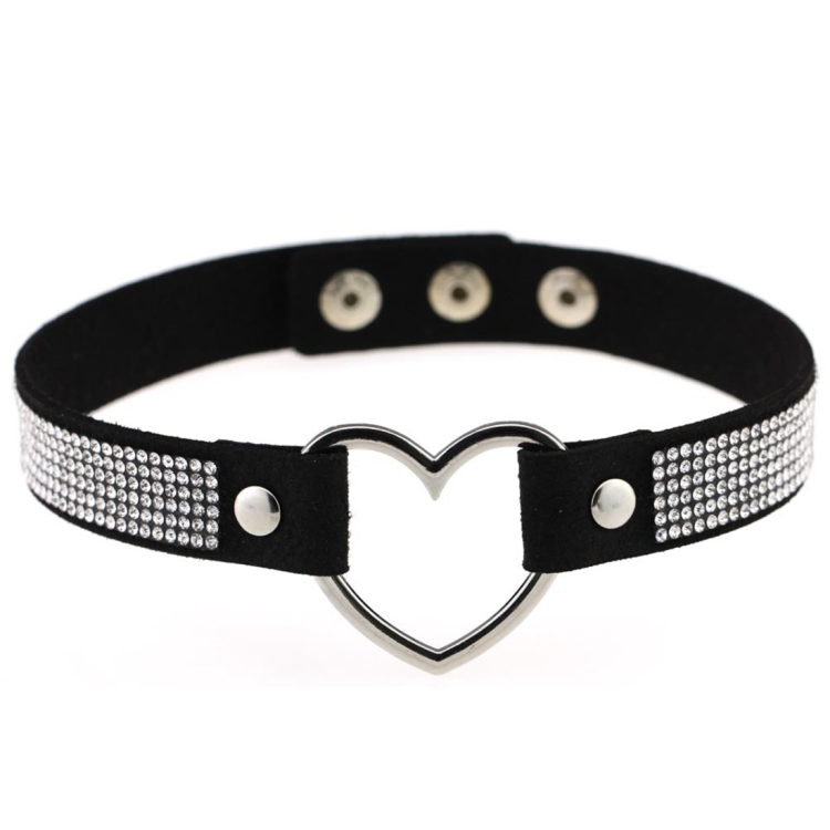 Japanese Harajuku Rhinestone Heart Shape Punk Collar Fashion Female Choker Necklace, Random Color Delivery