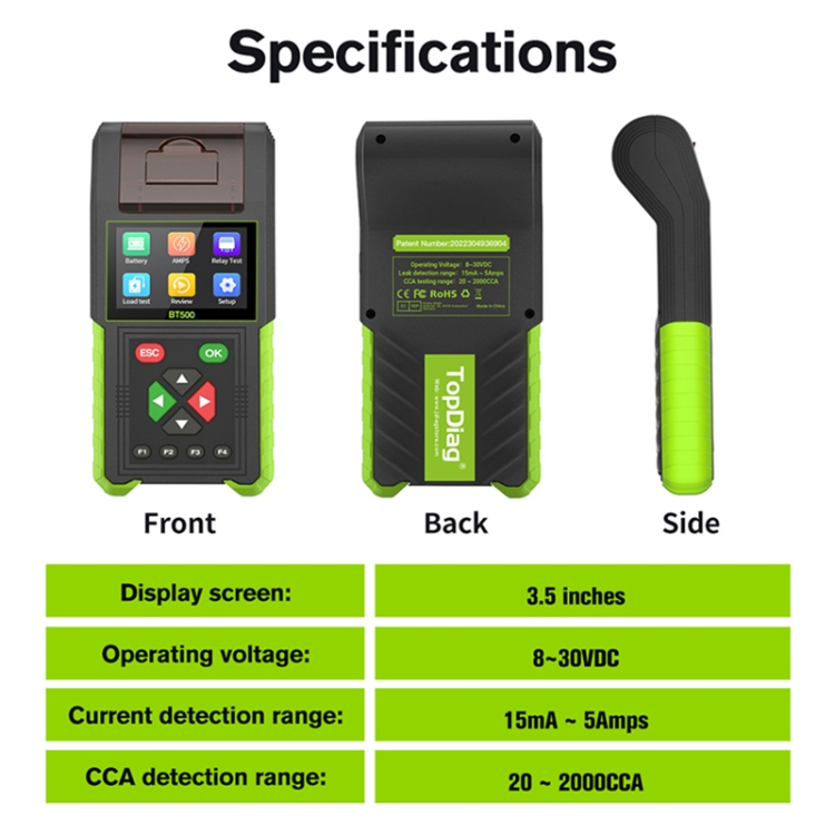 – Support multiple specifications: CCA, JIS, GB, SAE, MCA, CA, DIN, IEC, EN, BCI.