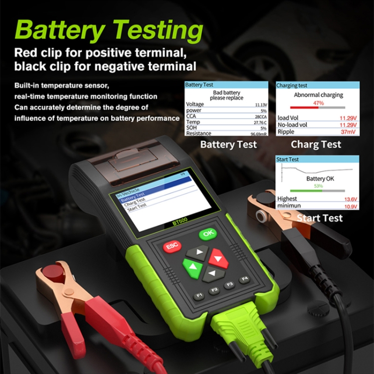 JDiag BT500 12-24V Car Battery Intelligent Analyzer Diagnostic Instrument with Printer