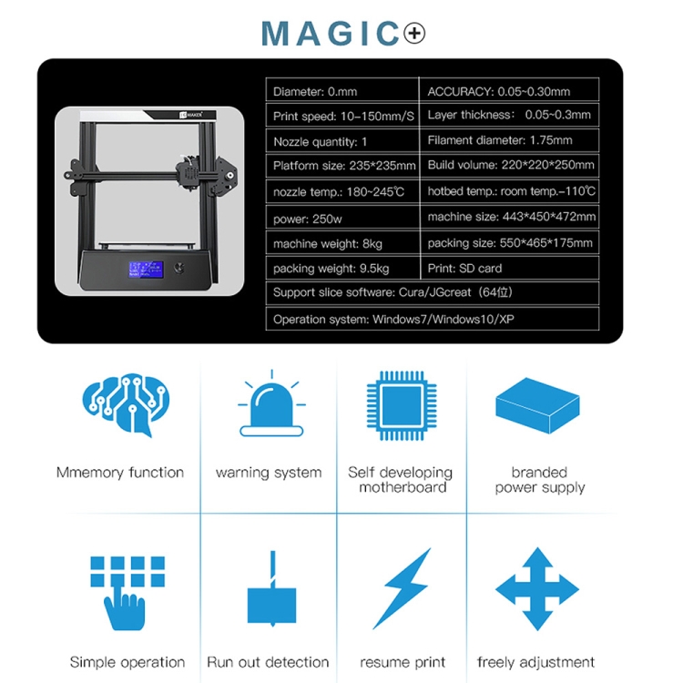 JGAURORA Magic 250W LCD Display Desktop 3D Printer with Knob Control
