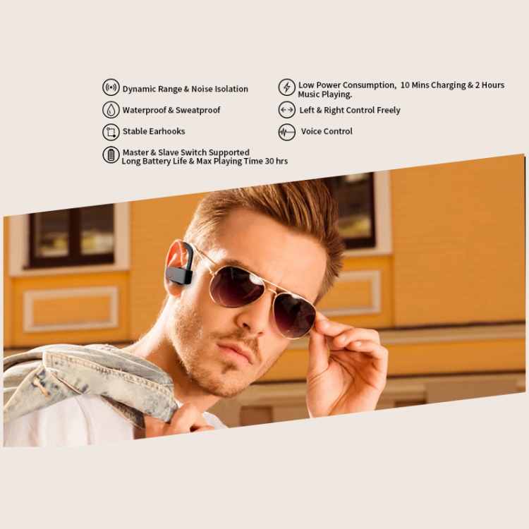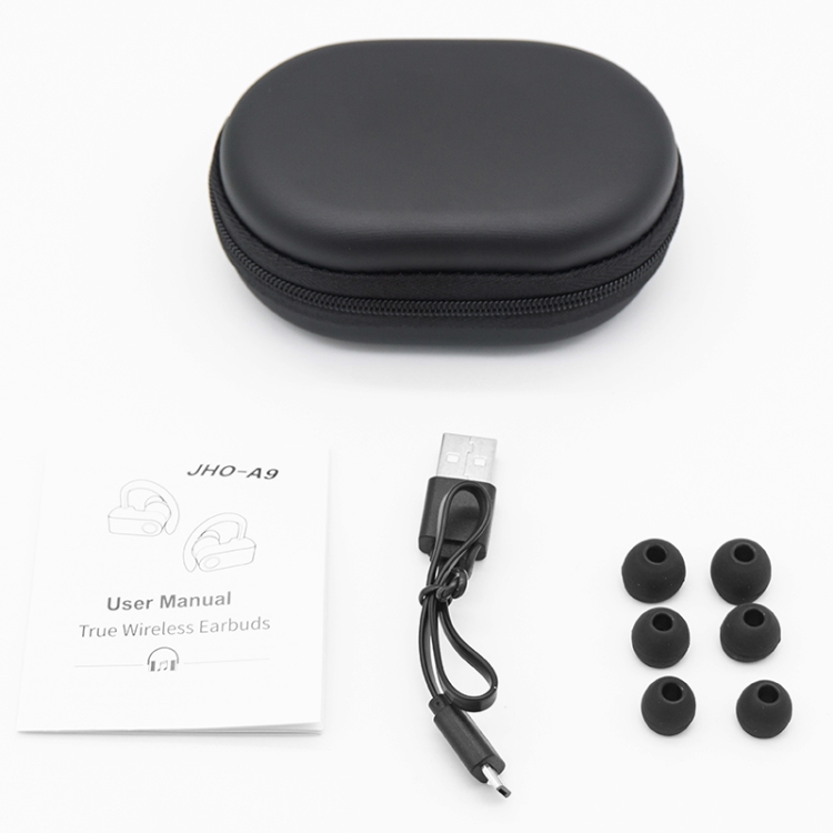 JHO-A9 TWS Wireless Hanging Ear Type Bluetooth Earphone with Charging + Storage Integrated Zipper Bag, Support Voice Control