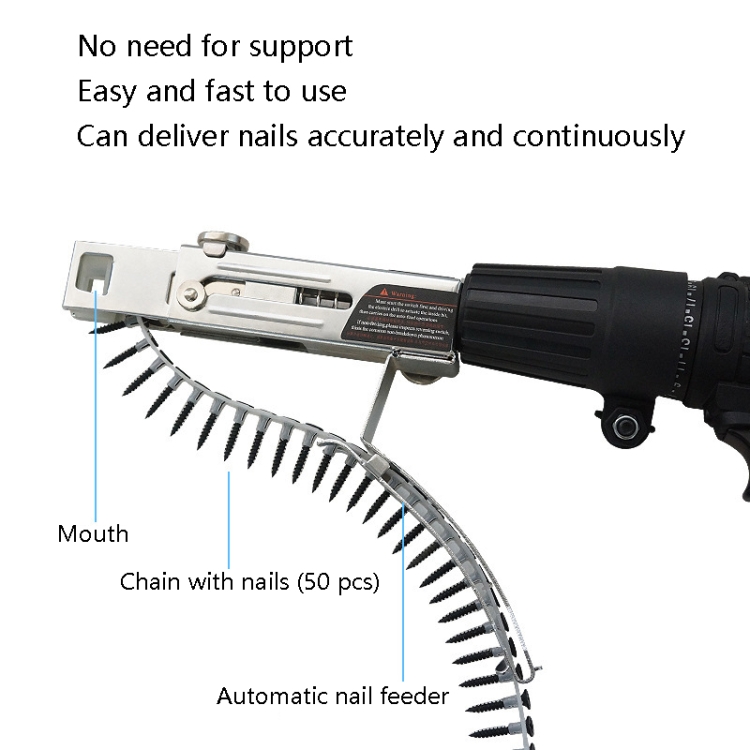 5. Accessories: converter, chain with nails (50 nails), automatic nail feeder, cross bit