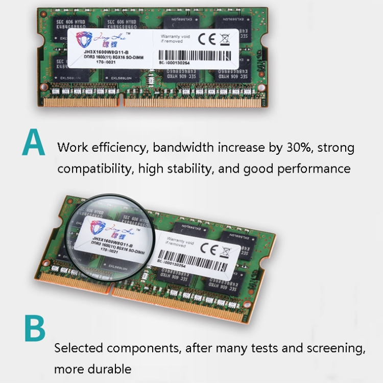 JingHai 1600MHz DDR3L PC3L-12800S 1.35V Low Voltage Notebook Memory Strip