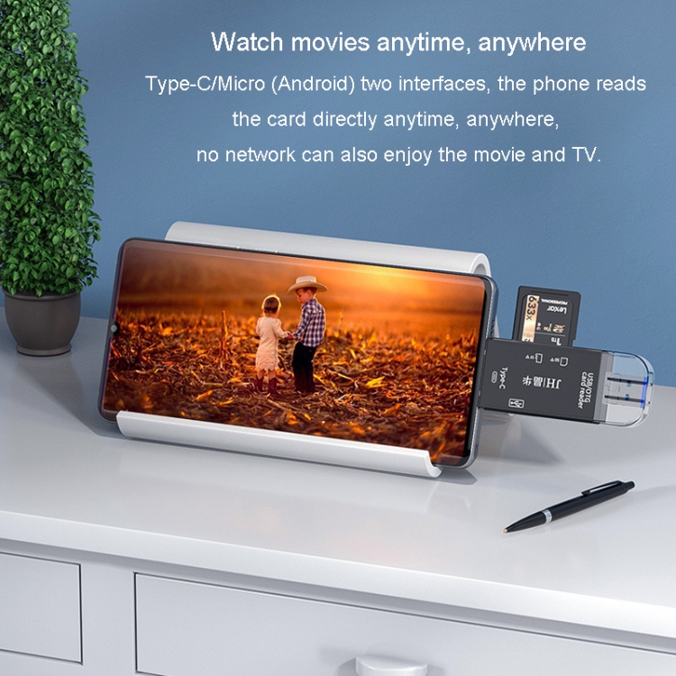 4. Type-C / Micro (Android) two interfaces, the phone reads the card directly anytime, anywhere, no network can also enjoy the film and television