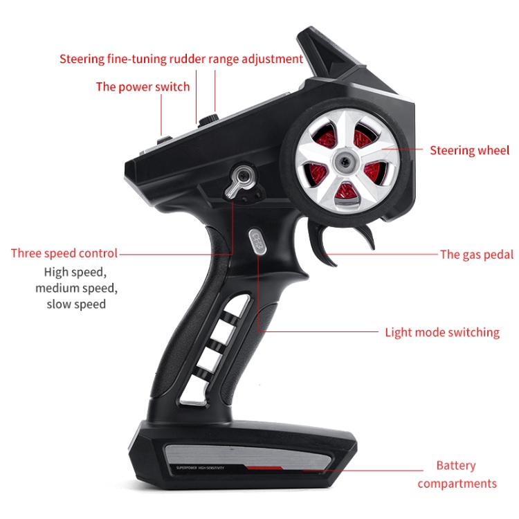 5. 2.4G full-scale synchronous remote control system. Full-scale throttle/steering