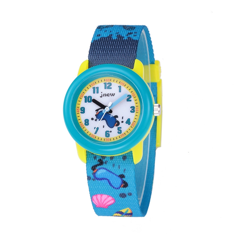 JNEW A369-86336 Children Cartoon Waterproof Time Cognitive Ribbon Watch