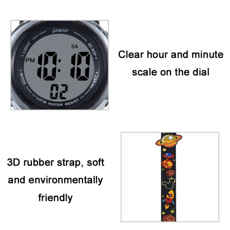 Be the first to review “JNEW A380-86161 Children Cartoon 3D Space Planet Multifunctional Waterproof Sports LED Electronic Watch”