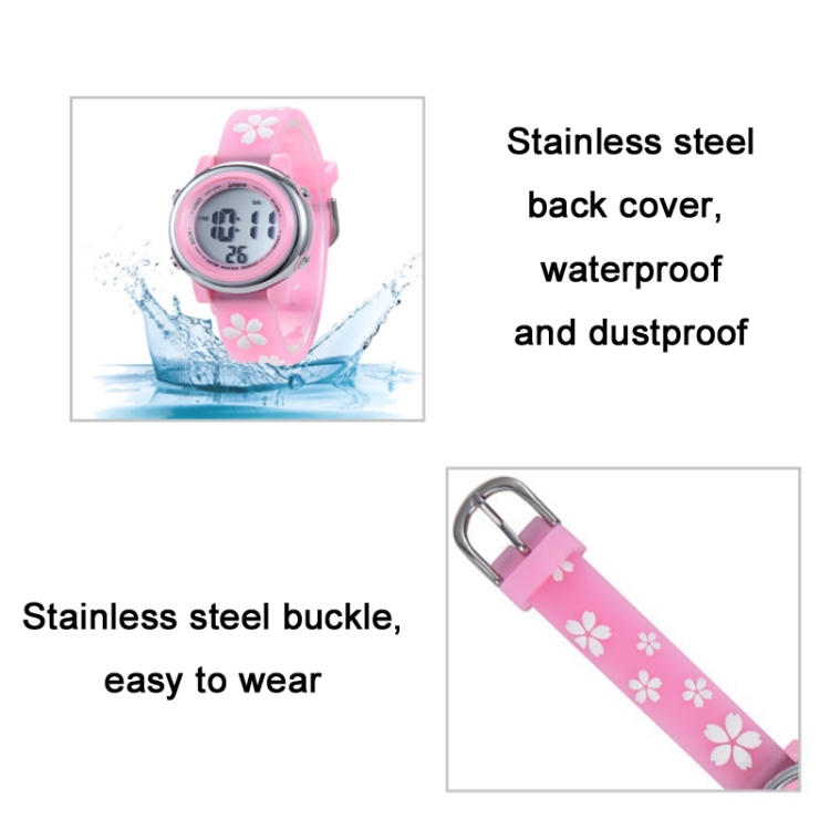 JNEW A380-86195 Children Cartoon Cherry Blossom Waterproof Time Recognition Colorful LED Electronic Watch