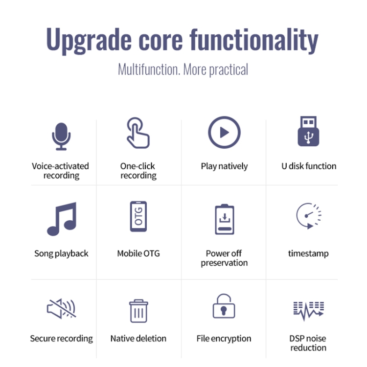 3. ADPCM recording 192Kbit, optional voice-activated recording 50DB, automatic split recording.
