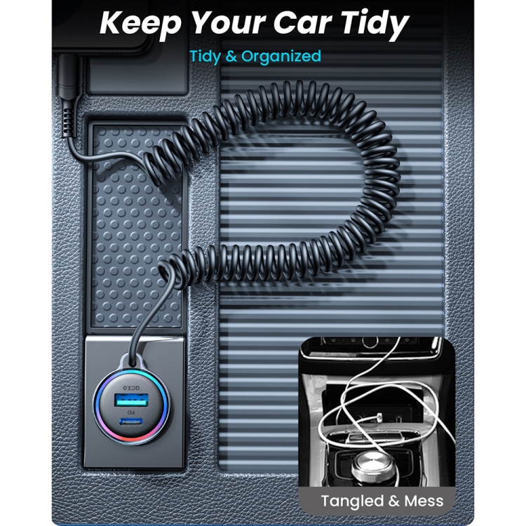 JOYROOM JR-CL07 3 in 1 55W PD USB-C / Type-C + USB Interface Car Charger with USB-C / Type-C Spring Data Cable