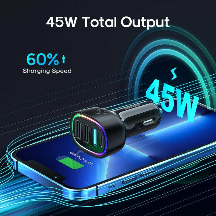 JOYROOM JR-CL09 45W PD+QC 3.0+Dual USB 4 Ports Fast Charging Car Charger