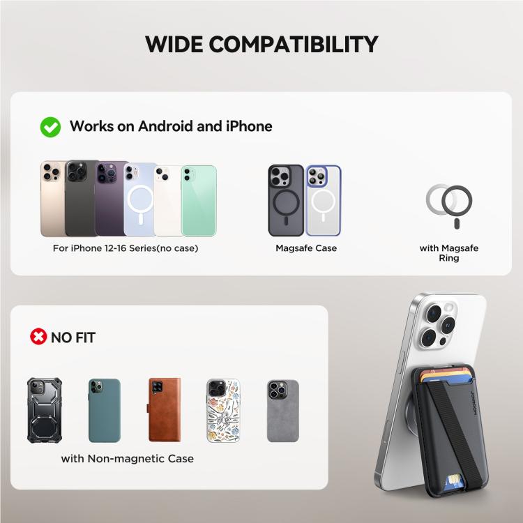 4. Lightweight design, seamlessly adsorbed on the back of the phone, can easily store 1-3 cards.