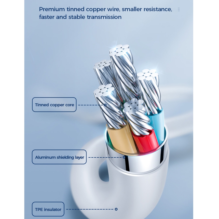 3. Thick tinned copper wire, fast charging speed, no damage, fast data transmission speed