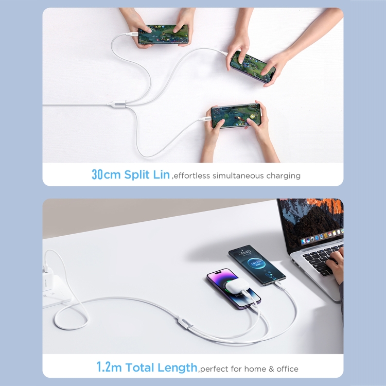 JOYROOM S-S-2T3018A15 Ice-Crystal Series 1.2m 3.5A USB+Type-C to 8 Pin+Type-C+Micro USB 3 in 2 Fast Charging Cable