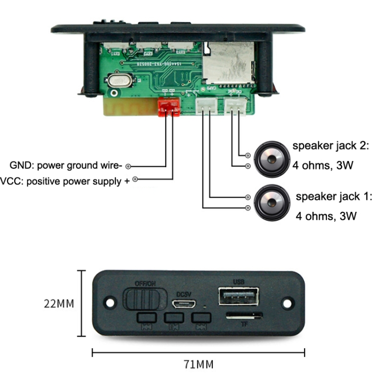 | Option | XY-C100L, JQ-D102BT, ZK-1002L, AS1711BTSE, AS1711BT, NE5532, TDA7377, TDA7850, PAM8406 Chip |