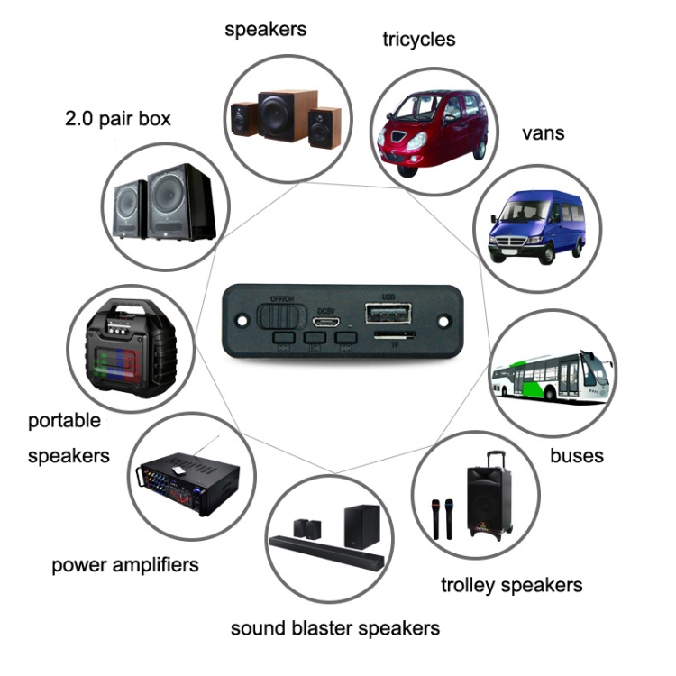 7. Application areas: speakers, tricycles, vans, buses, trolley speakers, power amplifiers, etc.