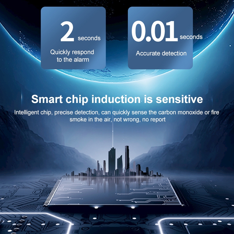 13. Built-in smart chip, sensitive sensing, can accurately identify carbon monoxide or fire smoke in the air, without false alarms