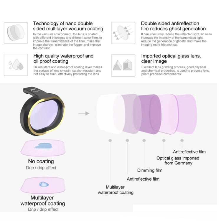 2. Significantly reduce lens flare and ghosting while making the filter anti-scratch, reduce reflection, increase surface durability, water resistant, oil & dust resistant.