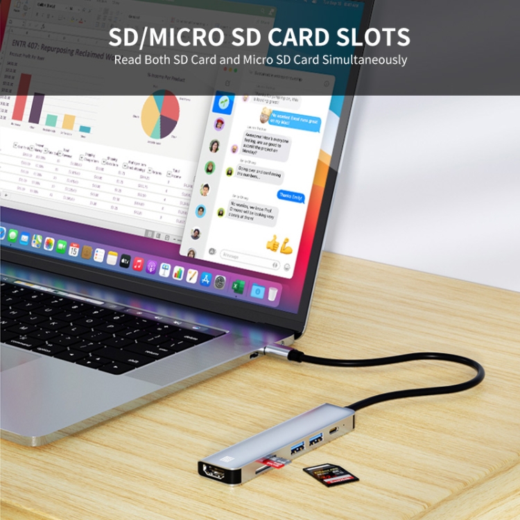 1. Extensive capability: JUNSUNMAY 6-in-1 USB Type-C hub includes 1*Micro SD card reader, 1*TF card reader,1*USB 3.0 Ports, 1*USB 2.0 Ports,1*Type-C PD charging port, 1*4K HDMI video output.