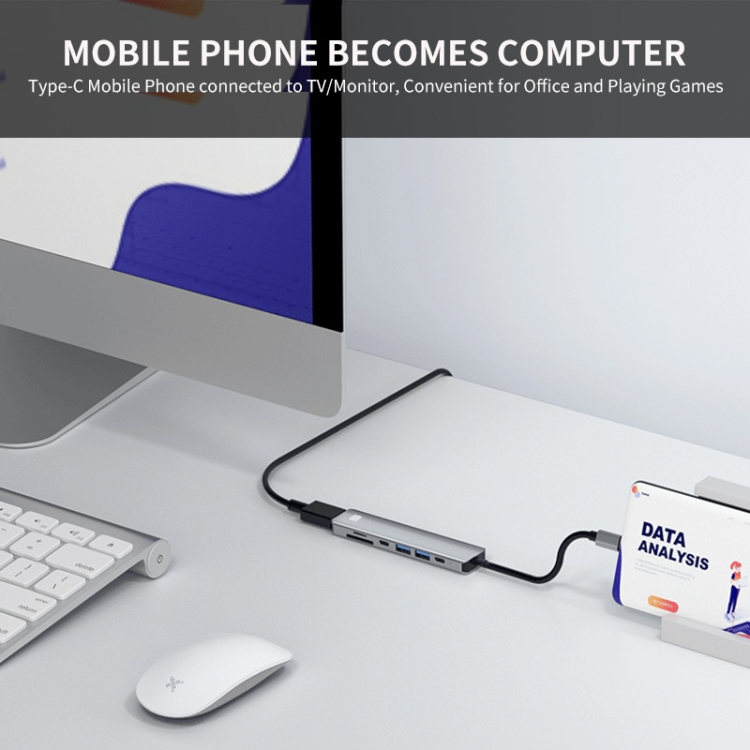 JUNSUNMAY 7 in 1 Type-C to 4K HDMI Docking Station Adapter PD Quick Charge Hub SD/TF Card Reader