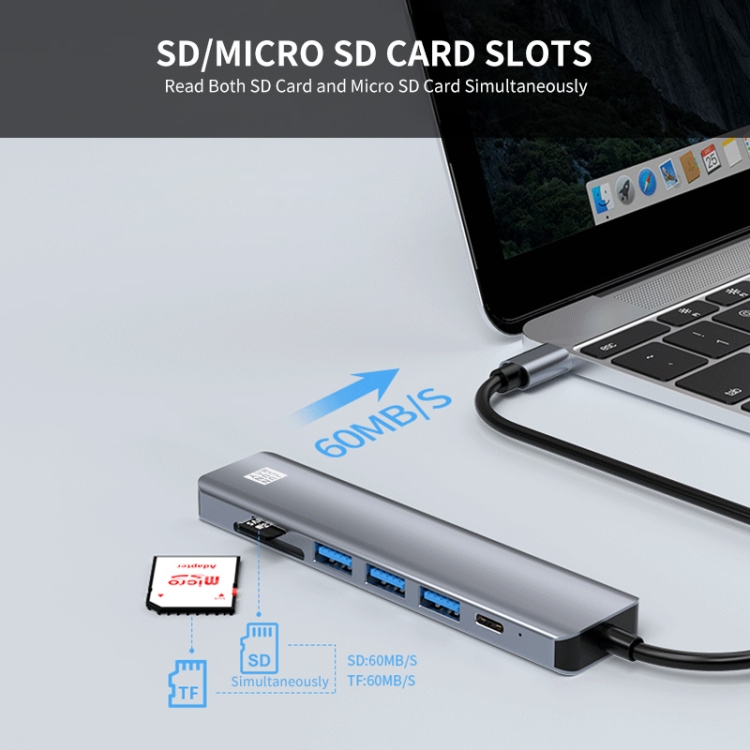 3. Reading SD/TF Cards Simultaneously: Built-in SD and TF slots easily access files from universal SD card and Micro SD cards; Supports 2 cards reading simultaneously. With speeds up to 60MB/S, this USB C Hub easily transfers photos or videos from your camera’ cards to the laptop in seconds, so you can see and share your photos anywhere and anytime.
