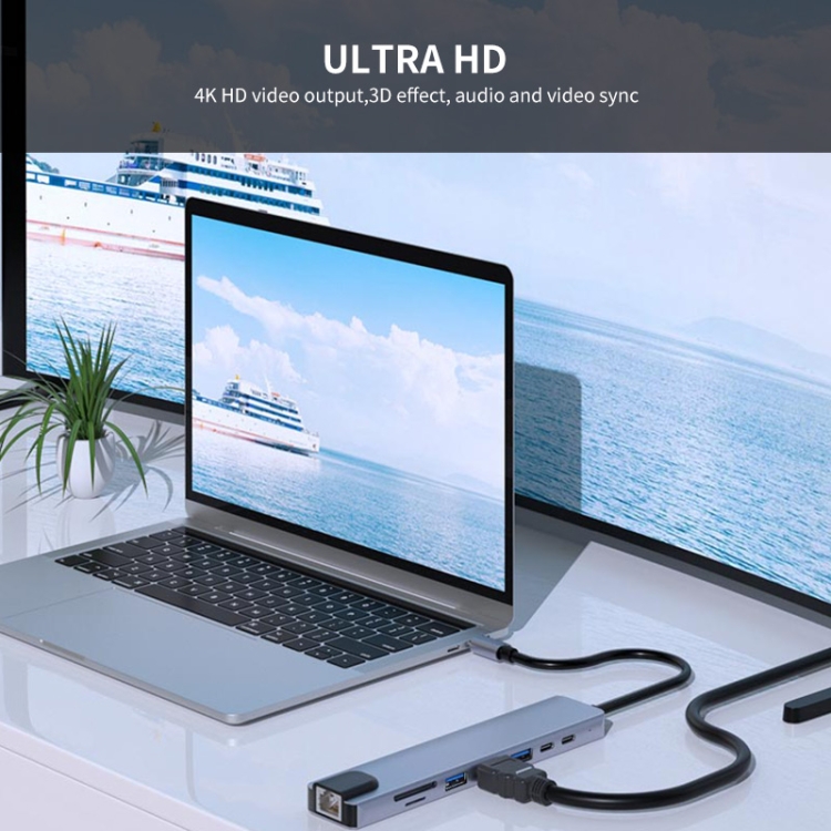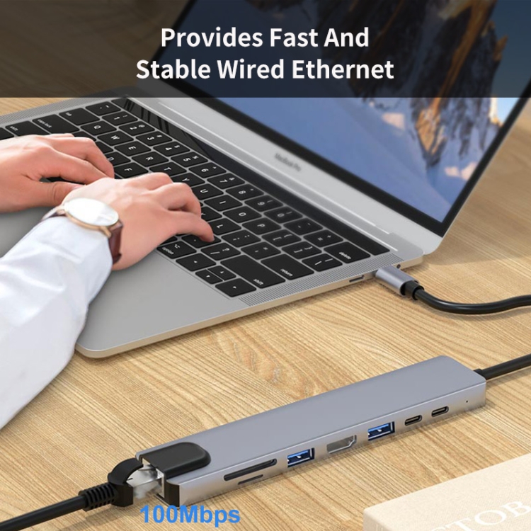 JUNSUNMAY 8 in 1 Type-C to 4K HDMI / Ethernet Docking Station Adapter PD Quick Charge Hub SD/TF Card Reader