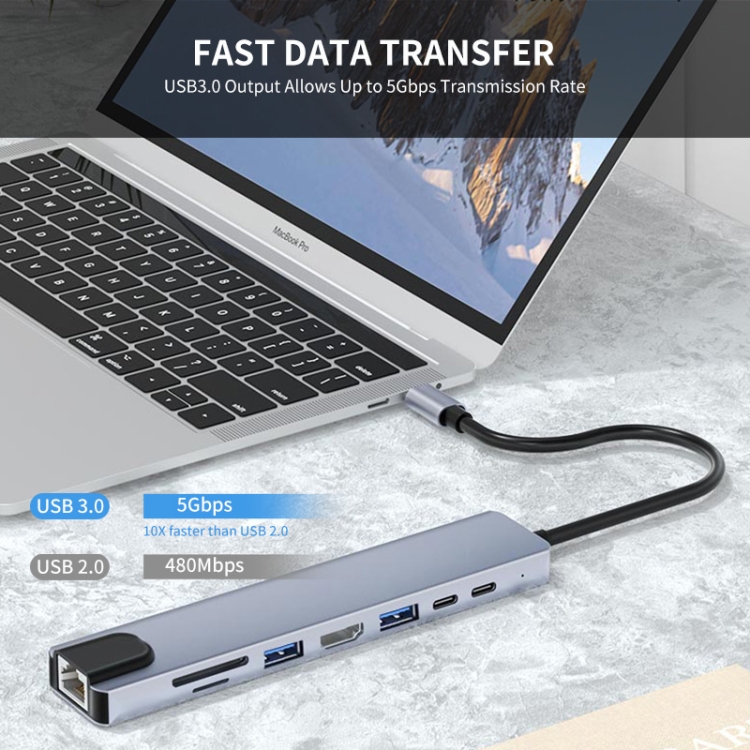1. Extensive capability: JUNSUNMAY 8-in-1 USB Type-C hub includes 1*RJ-45 Ethernet Port,1*Micro SD card reader, 1*TF card reader,1*USB 3.0 Ports, 2*USB 2.0 Ports,1*Type-C PD charging port, 1*4K HDMI video output.
