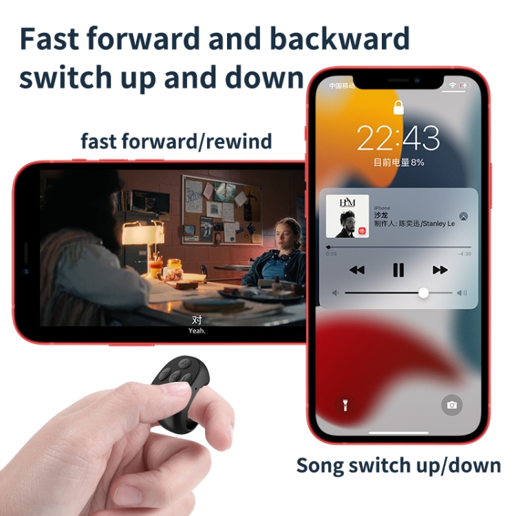 4. Comfortable and convenient: Ergonomically designed, it can be worn as a ring on your finger. The selfie button allows you to watch short videos while lying down without having to manually turn pages on your phone.