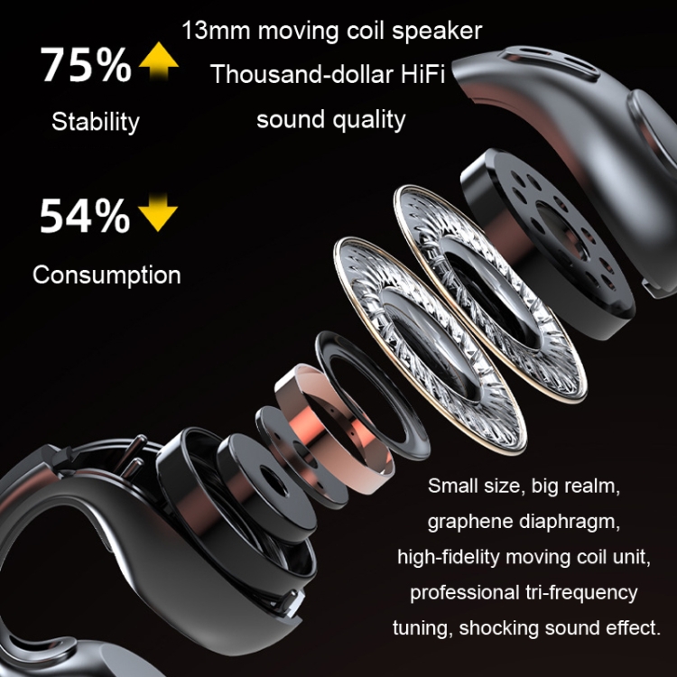 JX80 TWS Wireless Bone Conduction Clip-On Ear Noise Reduction Bluetooth Headset