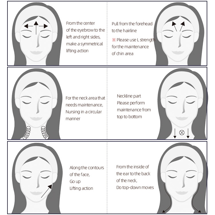 3. adjustable levels (High / Medium / Low) of intensity, fitting for different facial demands and skin types