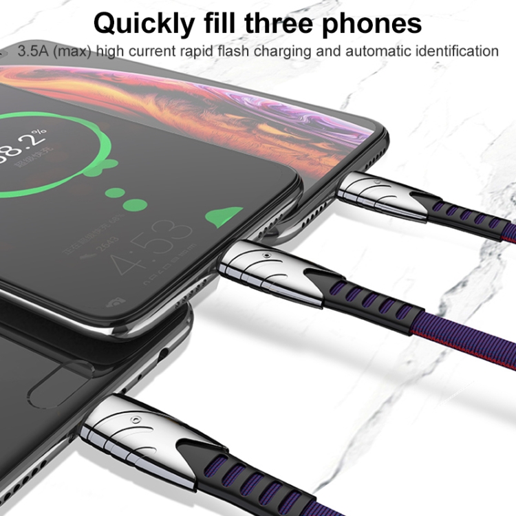 K051 1.2m 3 in 1 USB to 8 Pin + USB-C / Type-C + Micro USB Shark Fabric Data Cable
