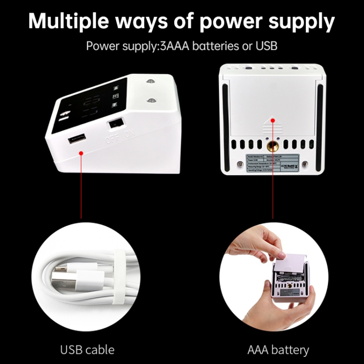 5. With USB Type-C port, can be connected to USB power source, power bank, 3 x AAA battery (not included).