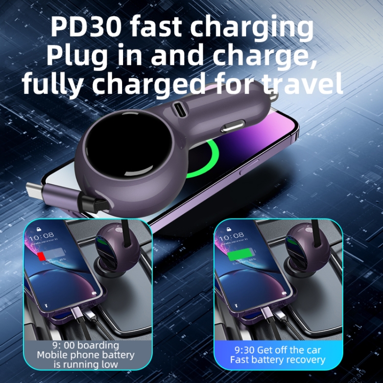 K2 With 60W Type-C Retractable Cable Type-C Port Phone Fast Charging Adapter Car Charger