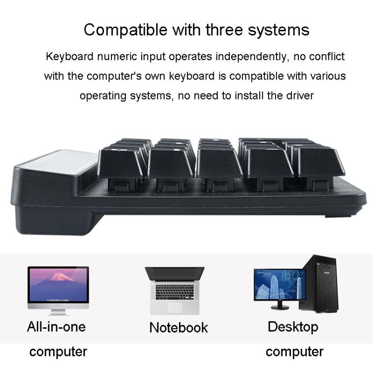7. Three system compatibility, the keypad digital input independent operation, no conflict with the computer’s own keyboard, compatible with a variety of operating systems, without the need to install the driver