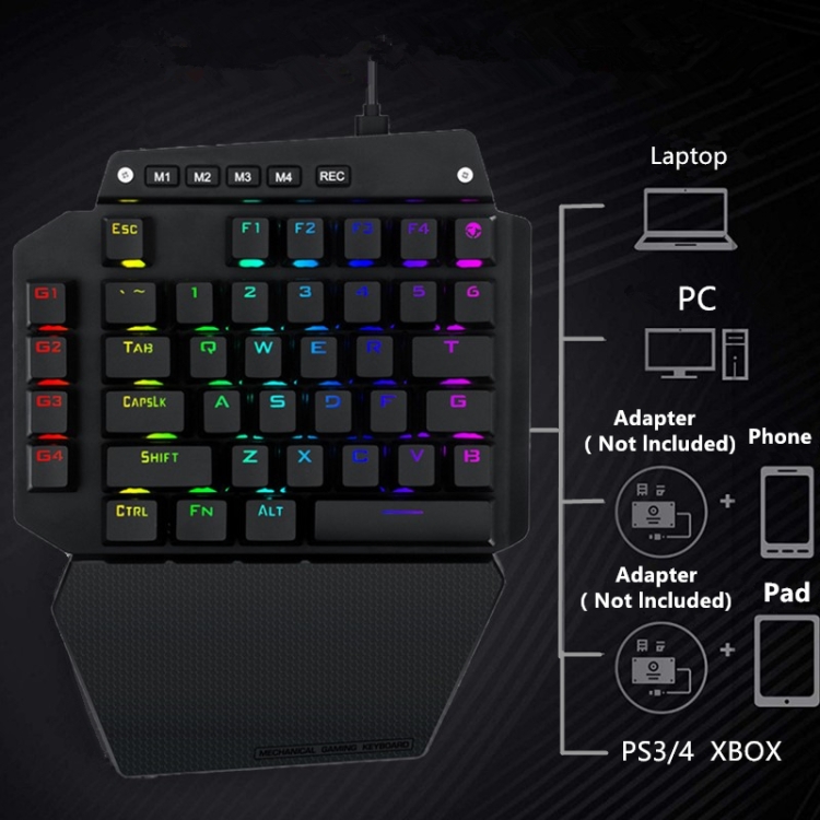 K700 44 Keys RGB Luminous Switchable Axis Gaming One-Handed Keyboard, Cable Length: 1m