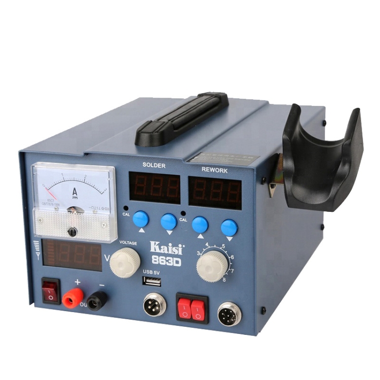 Kaisi K-863D 3 in 1 Hot Air Gun Soldering Station SMD Rework Station With 3A DC Power Supply for Phone PCB Welding Repair Machine, US Plug