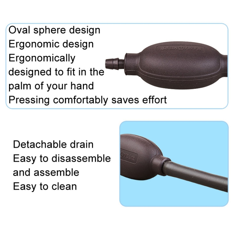 7. Note: avoid the dry environment in the sun; if the suction ball clogging, please remove the suction ball double head interface, rinse with water