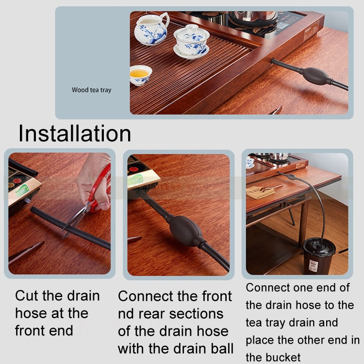 3. Connect one end of the drain hose to the tea tray drain, and place the other end in the drain bucket