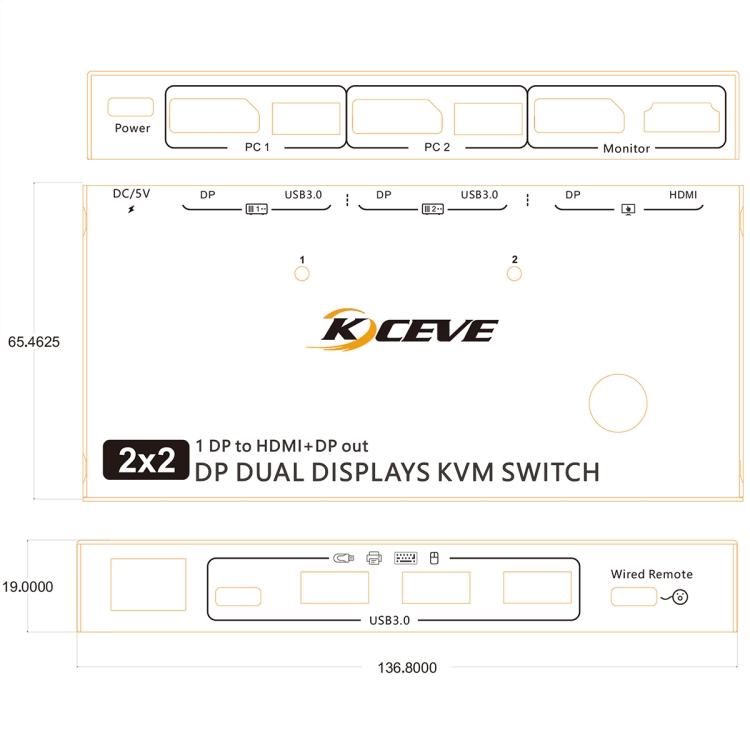 KC-KVM212DH 4K 60HZ USB3.0 DP Dual Display KVM Switcher with MST Dual Screen Extension Replication