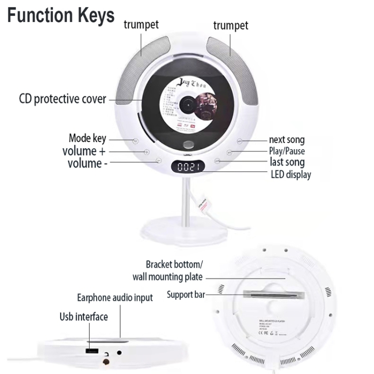 Kecag KC-607 Wall Mounted Bluetooth Compact Disc Album CD Player
