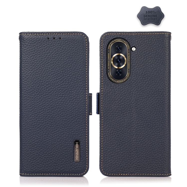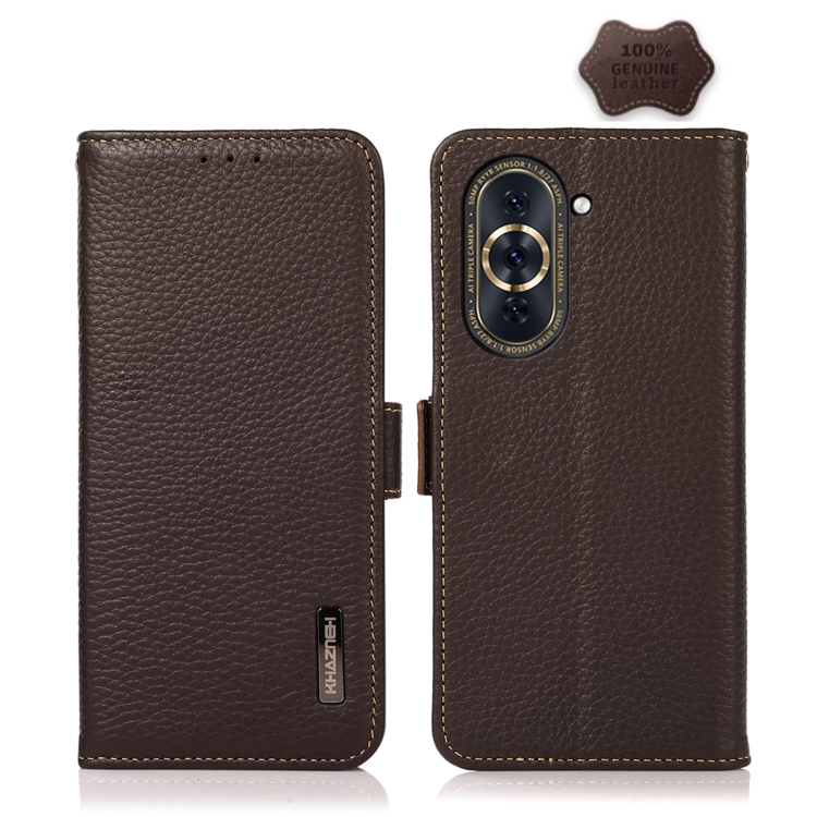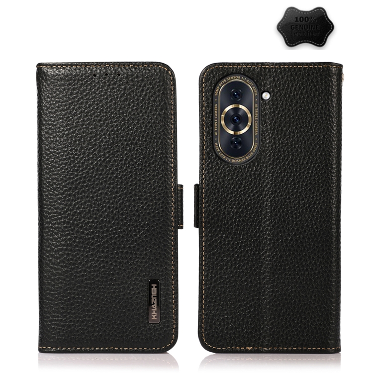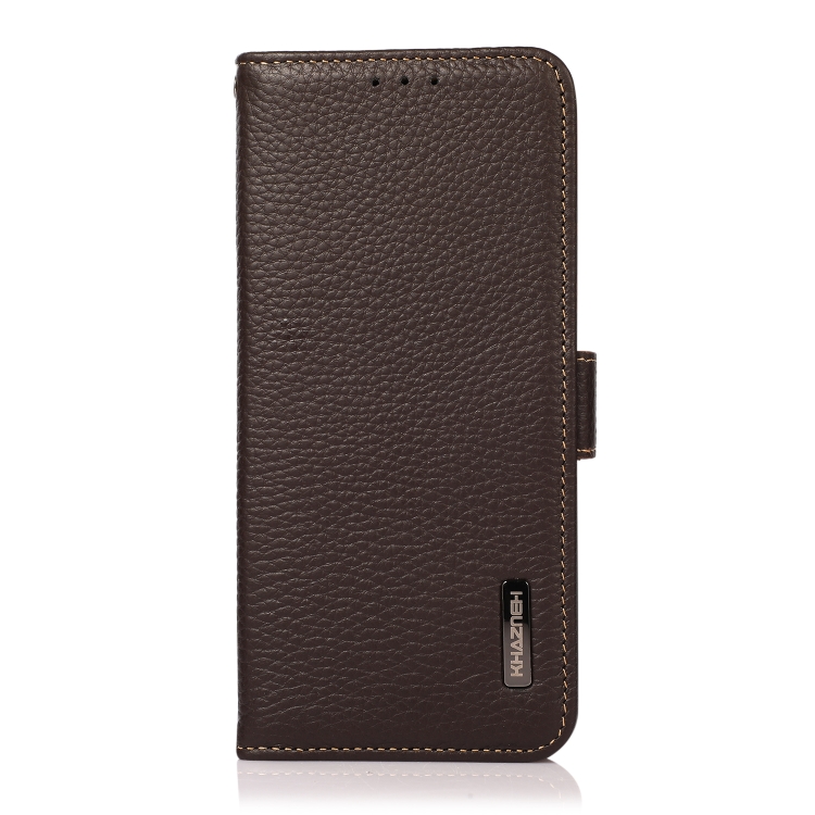 KHAZNEH Side-Magnetic Litchi Genuine Leather RFID Phone Case