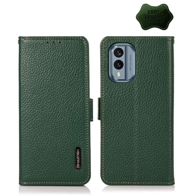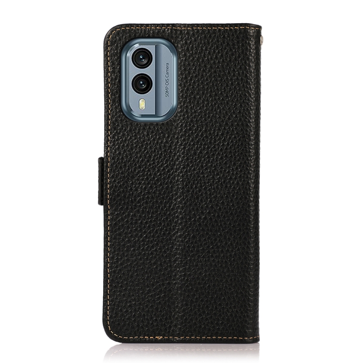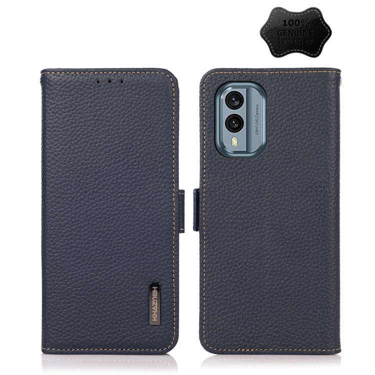 KHAZNEH Side-Magnetic Litchi Genuine Leather RFID Phone Case