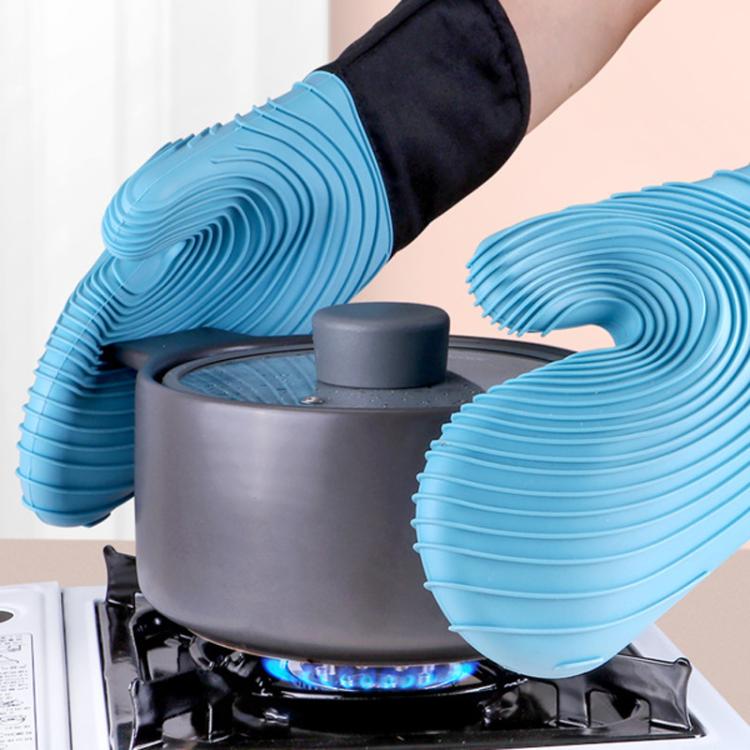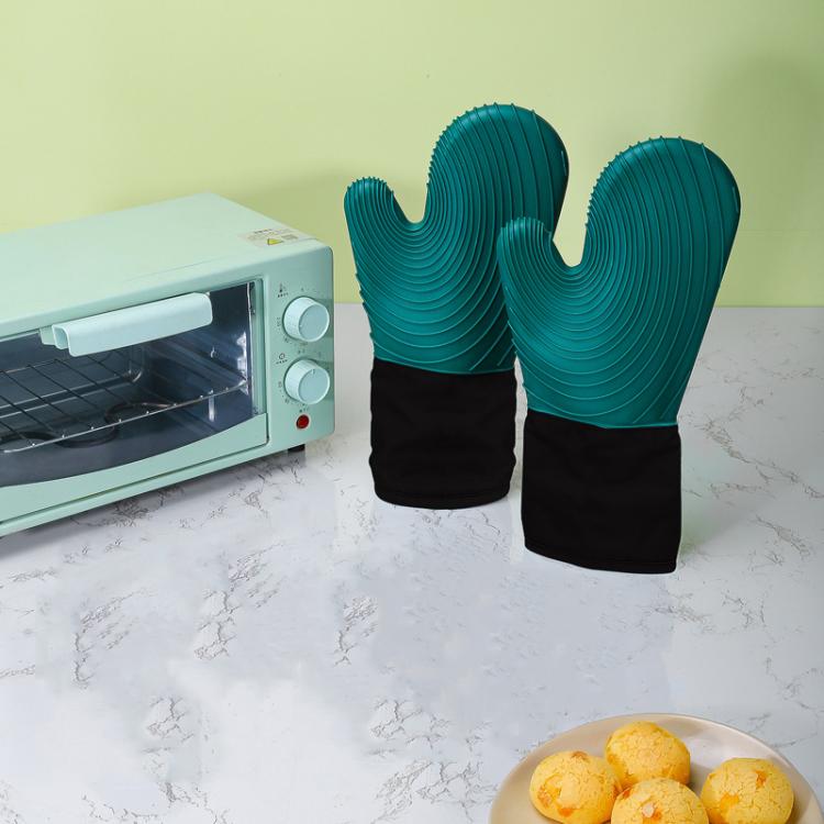 Kitchen Heat-Resistant Thickened Silicone Beveled Thread Gloves Microwave Baking Heat Protective Gloves