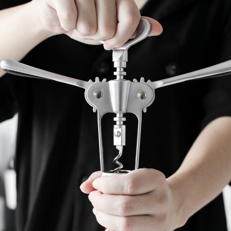 3. Insert the spiral needle into the cork and rotate the handle to the top
